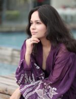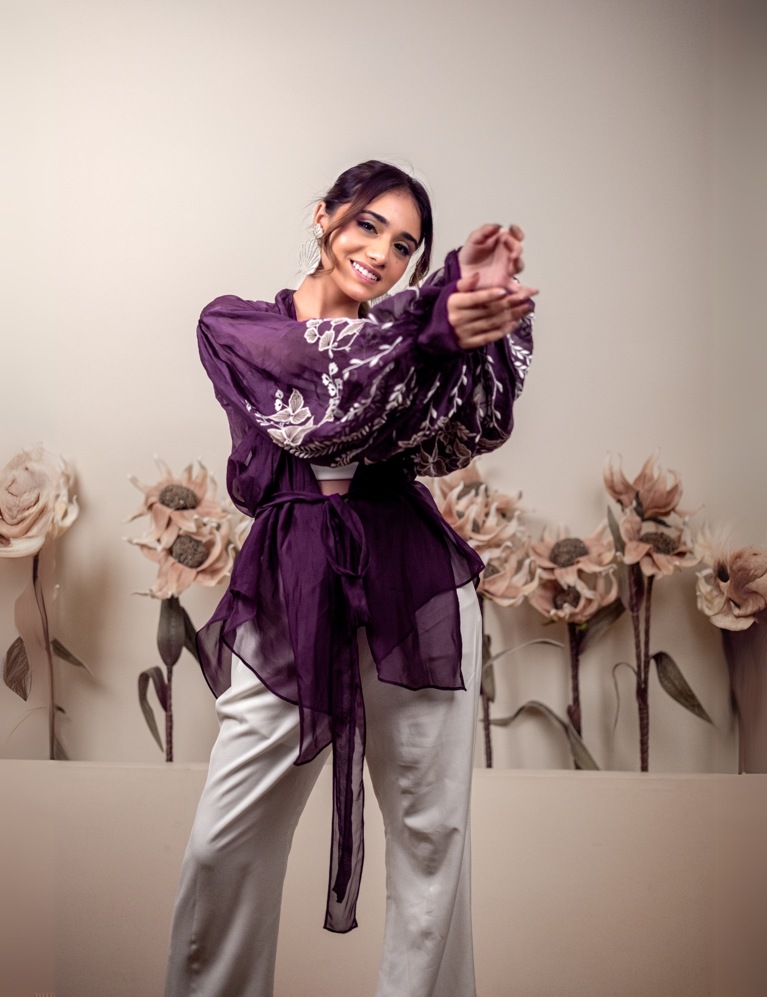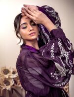 Purple embroidered jacket with floral detailing.