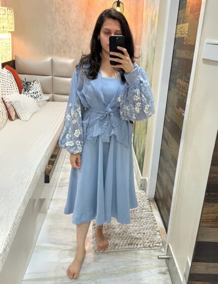 Bloomed blue Jacket dress set