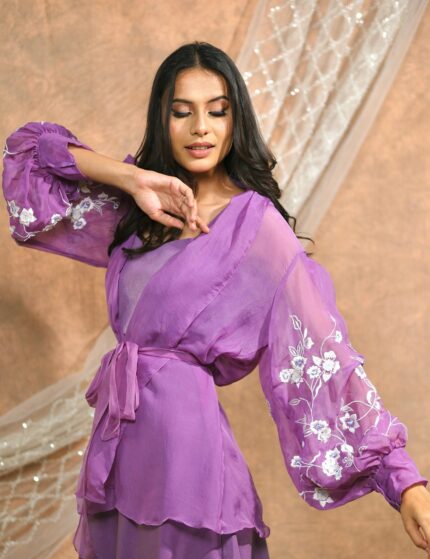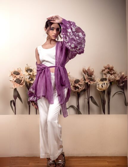 Bloomed Lavender jacket with white co-ord set