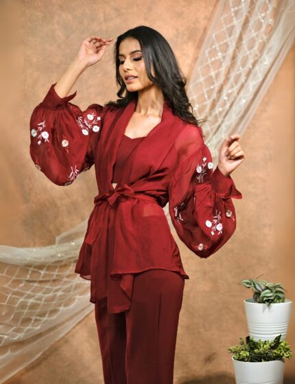 Bloomed maroon co-ord set